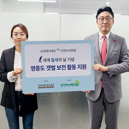 신세계면세점, 영종도 갯벌 보존 활동 5년째 후원 행보신세계면세점은 10월 14일 철새의 날을 앞두고, 11일 인천녹색연합에 영종도 갯벌 보전 활동 후원금을 전달했다.