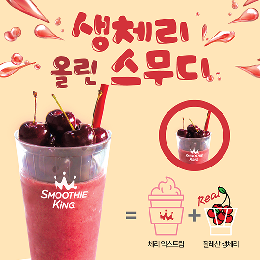 스무디킹, 칠레신선과일수출협회와 손잡고 ‘생체리 올린 스무디’ 출시신세계푸드가 운영하는 건강하고 활기찬 라이프 스타일 브랜드 ‘스무디킹(SMOOTHIE KING)’이 칠레신선과일수출협회와 손잡고 제철 맞은 칠레 생체리를 활용한 신메뉴를 선보인다.