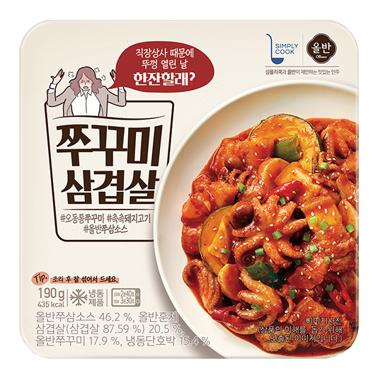 신세계푸드, 홈술족 위한 안주 간편식 ‘올반 쭈꾸미 삼겹살’ 출시신세계푸드와 GS리테일이 협업을 통해 출시한 신제품은 ‘올반 한잔할래 쭈꾸미 삼겹살’이다. 탱글탱글한 쭈꾸미와 훈제 삼겹살, 달콤한 단호박을 넣어 다채로운 식감과 풍미를 느낄 수 있다.