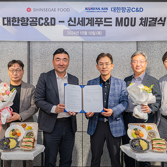 신세계푸드, 대한항공C&D와 식물성 기내식 개발 및 공급 MOU 체결신세계푸드가 대한항공씨앤디서비스(이하 대한항공C&D)와 식물성 기내식 개발 및 공급 확대를 위한 업무협약(MOU)를 체결했다.