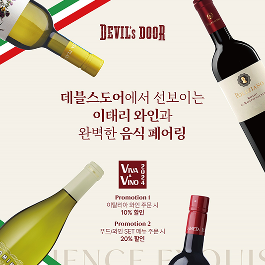 신세계푸드 ‘데블스도어’, 주한 이탈리아 무역공사 와인 캠페인 ‘비바 일 비노’ 참가신세계푸드의 아메리칸 스타일 게스트로펍 ‘데블스도어’가 주한 이탈리아 무역공사가 주관하는 이탈리아 와인 캠페인 ‘비바 일 비노 2024(Viva il Vino 2024)’에 참가한다.