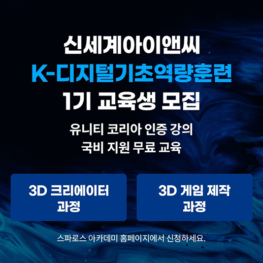 신세계아이앤씨, ‘K-디지털 기초역량훈련’ 사업자 선정… 3D 콘텐츠 개발 과정 모집신세계아이앤씨(대표 형태준)가 고용노동부 주관 ‘K-디지털 기초역량훈련’ 사업자로 선정되어, 유니티 기반 3D 게임 및 콘텐츠 제작 분야 교육생을 모집한다. ‘K-디지털 기초역량훈련’은 고용노동부와 직업능력심사평가원 주관의 디지털 직무역량 개발 지원 사업으로 코딩, 빅데이터 등 디지털·신기술 분야 초·중급 수준의 교육과정을 지원한다.