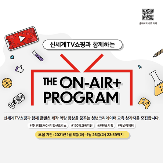 신세계TV쇼핑, 뉴미디어 분야 청년 지원 위한 ‘더 온에어 플러스(THE ON-AIR+)’ 교육생 모집2021.01.06 -