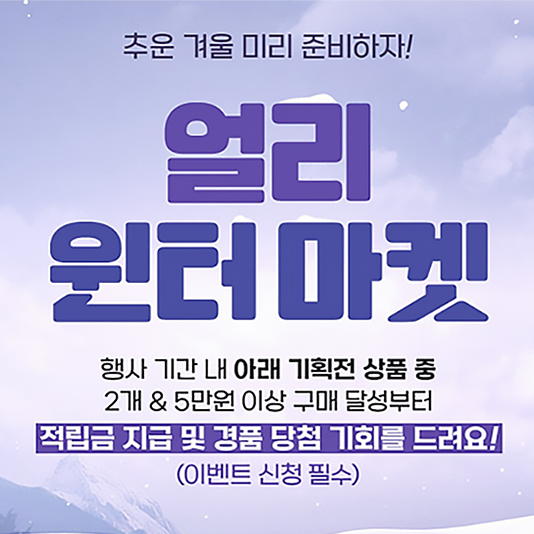 신세계라이브쇼핑, 겨울 맞아 얼리 윈터마켓 연다..다양한 경품 혜택과 적립금 증정!신세계라이브쇼핑이 겨울을 앞두고‘얼리 윈터 마켓’을 연다고 밝혔다.