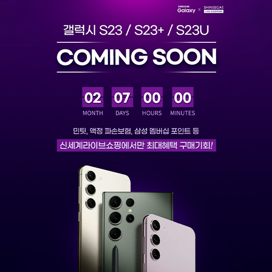 신세계라이브쇼핑, 갤럭시 S23 가장 먼저(00시) 예약 판매 방송 시작! 파격 혜택 제공신세계라이브쇼핑이 가장 먼저 갤럭시 S23 예약판매 방송을 시작한다고 밝혔다. 2월 7일(화) 0시부터 갤럭시 S23을 모바일라이브로 방송할 예정이며, 하루 동안에만 0시, 11시, 19시, 22시 4번에 걸쳐 연속 판매한다.
