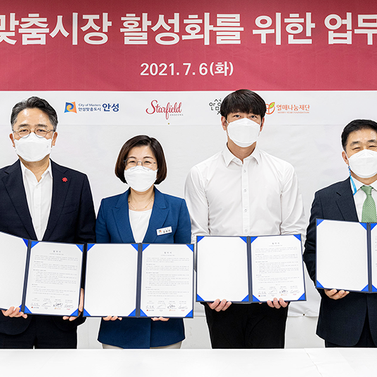 스타필드 안성, 안성맞춤시장 활성화 위한 MOU 체결‘진정성 있는 지역 동반성장 파트너’ 스타필드가 이번엔 안성시 전통시장 ‘스타’ 만들기에 힘을 보탠다. 신세계프라퍼티는 스타필드 안성이 지난 6일(화) 안성시와 안성맞춤시장 상인회, 사회복지법인 열매나눔재단과 업무협약을 체결, 지역사회 구성원으로서 안성맞춤시장의 활성화에 적극 나설 계획이라고 7일(수) 밝혔다.
