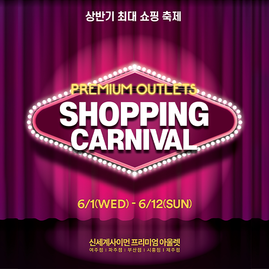 신세계사이먼, 상반기 최대 쇼핑 축제가 아울렛에서 열린다! ‘프리미엄 아울렛 쇼핑 카니발’ 전개신세계사이먼 프리미엄 아울렛이 쇼핑의 혜택과 이색적인 콘텐츠로 가득한 공간으로 변화한다. 신세계사이먼(대표 조창현) 프리미엄 아울렛이 오는 6월 1일(수) 부터 12일(일)까지 상반기 최대 쇼핑 축제 ‘프리미엄 아울렛 쇼핑 카니발’(PREMIUM OUTLETS SHOPPING CARNIVAL)을 진행한다.