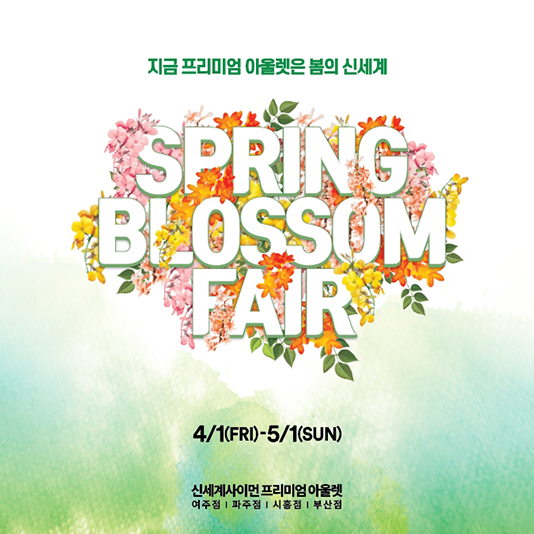 신세계사이먼, 봄 시즌 핫플레이스는 바로 프리미엄 아울렛! 스프링 블라썸 페어 진행신세계사이먼 프리미엄 아울렛이 봄의 신세계로 탈바꿈 한다! 신세계사이먼(대표 조창현)은 오는 5월 1일(일)까지 여주·파주·부산·시흥 프리미엄 아울렛에서 ‘스프링 블라썸 페어’(SPRING BLOSSOM FAIR)를 진행한다고 밝혔다.