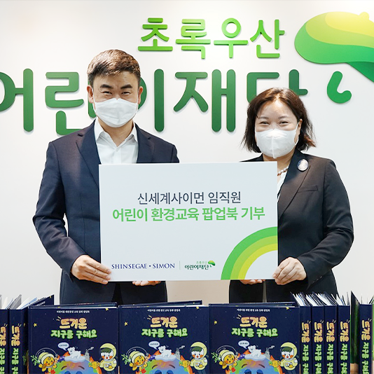 신세계사이먼, 초록우산어린이재단에 어린이 환경교육 팝업북 기부 진행신세계사이먼(대표 조창현)이 6월 14일(화) 초록우산어린이재단(회장 이제훈)에서 주요 관계자들이 참석한 가운데, ‘어린이 환경교육 팝업북 기부 행사’를 진행했다고 밝혔다.