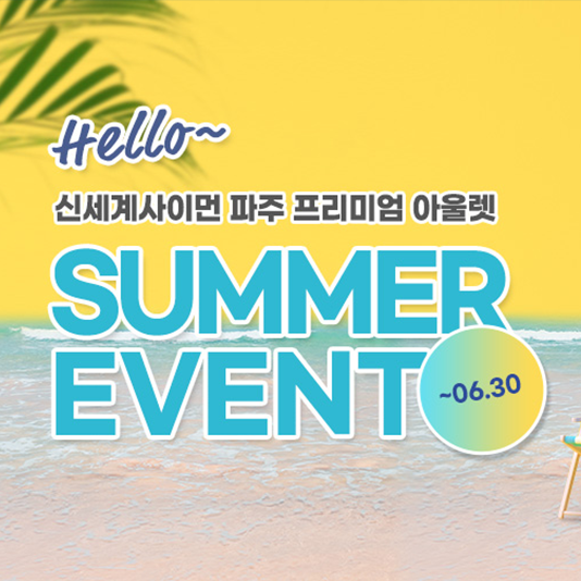신세계사이먼, 파주 프리미엄 아울렛 헬로 썸머 이벤트 진행신세계사이먼(대표 조창현)은 파주 프리미엄 아울렛에서 오는 30일(목)까지 쇼핑과 함께 문화 체험, 지역관광 등을 동시에 즐기는 ‘헬로 썸머 이벤트’(Hello Summer Event)를 진행 한다고 밝혔다.