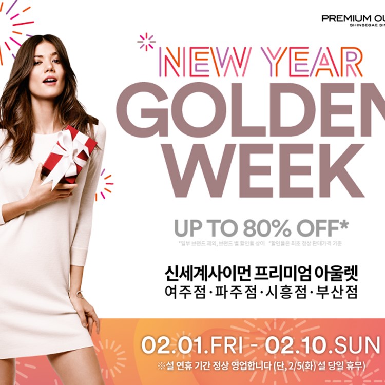 신세계사이먼, ‘뉴 이어 골든 위크’ 진행고속도로 인근에 위치해 귀경길에 방문하기 좋은 신세계사이먼 프리미엄 아울렛은 2월 1일부터 10일까지 ‘뉴 이어 골든위크’를 개최한다.
