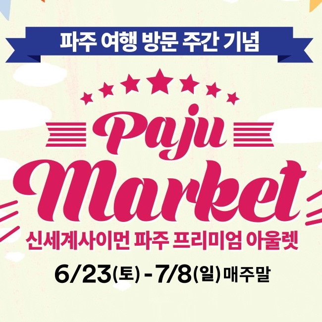 파주 프리미엄 아울렛 파주시 특산품과 함께하는 ‘파주 마켓’ 개최신세계사이먼 파주 프리미엄 아울렛이 ‘파주여행 방문주간’을 맞아 파주 특산품과 함께하는 ‘파주 마켓’을 개최한다.