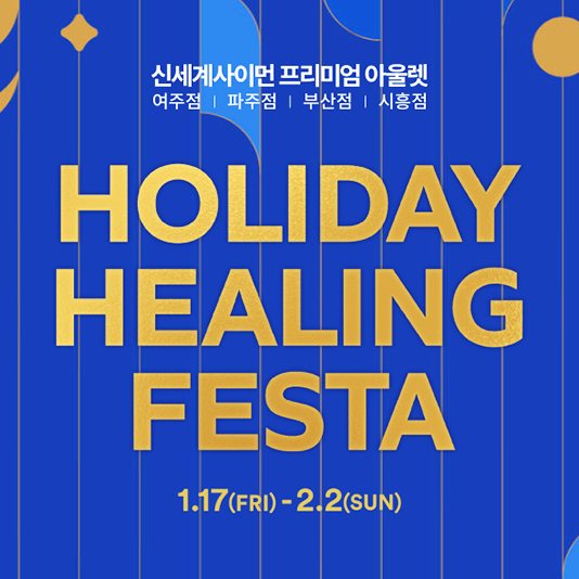 신세계사이먼 프리미엄 아울렛, ‘홀리데이 힐링 페스타’ 개최신세계사이먼(대표 김영섭)이 민족 대명절 설을 맞아 여주·파주·부산·시흥 프리미엄 아울렛에서 오는 2월 2일까지 ‘홀리데이 힐링 페스타(Holiday Healing Festa)’를 개최한다.