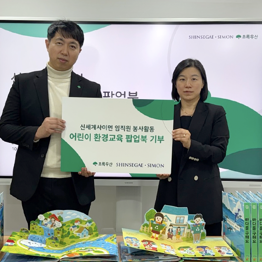 신세계사이먼, 초록우산에 환경교육 팝업북 기부신세계사이먼(대표 김영섭)이 자라나는 미래 세대인 어린이들에게 환경의 소중함을 알리는사회공헌 활동을 이어간다.