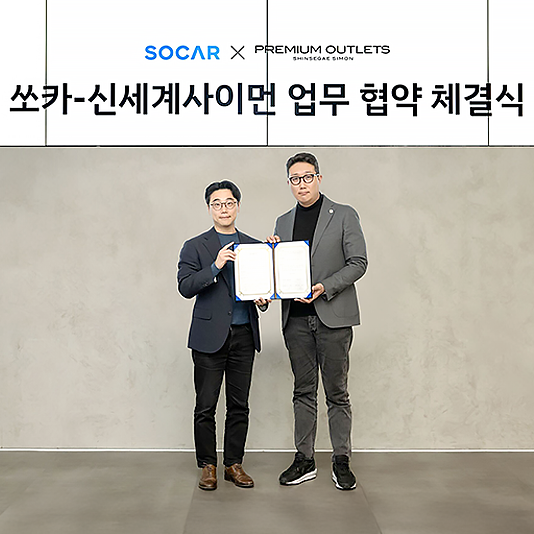 신세계사이먼, 쏘카와 제휴 시너지 위한 업무협약 체결신세계사이먼(대표 김영섭)이 모빌리티 플랫폼 쏘카(대표 박재욱)와 업무협약을 맺고 차별화된 고객 이동 경험 제공을 위해 노력한다고 16일 밝혔다.
