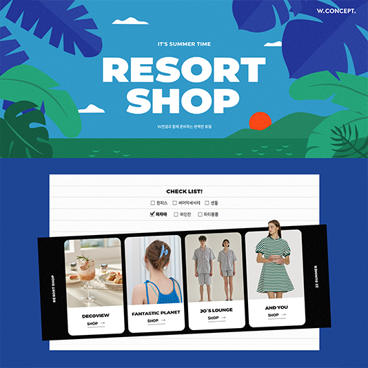 W컨셉, ‘리조트샵’ 기획전 진행…여름 휴가를 위한 스타일링 추천W컨셉이 본격적인 여름 휴가를 준비하는 고객을 겨냥해 휴양지 패션 상품을 한데 모아 소개하는 행사를 진행한다. 엔데믹(감염병의 풍토병 전환) 국면 접어들며 국내외 여행 수요가 크게 늘어나면서 여름 휴가지에서 입을 수 있는 다양한 스타일링을 제안한다는 계획이다.