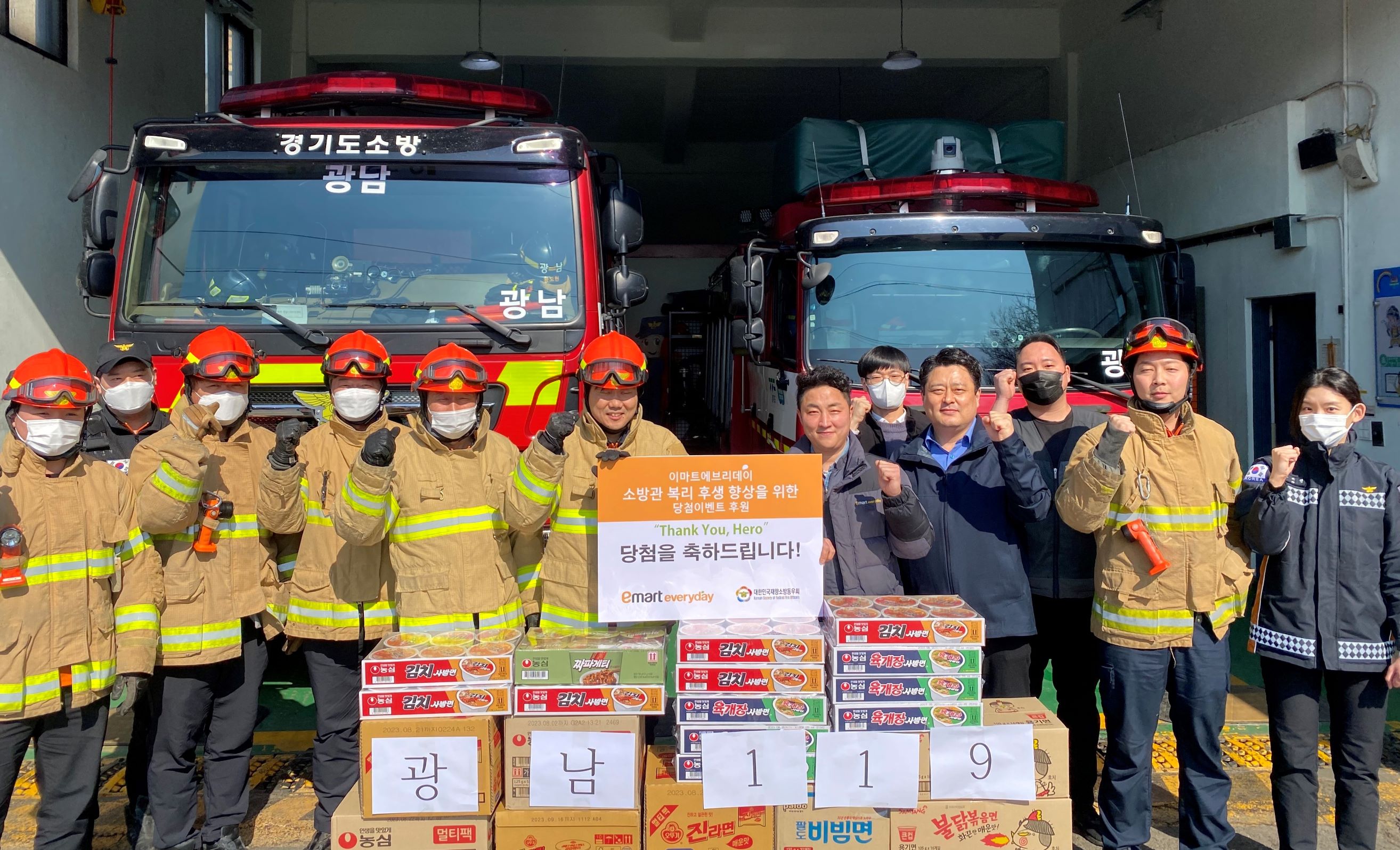MEDIA 글자 크기 보통 크게 아주 크게 공유하기 페이스북 X 카카오톡 링크 복사 링크 복사됨 도구 보기 이미지 다운로드 이마트에브리데이, 소방공무원 복지 개선을 위한 후원금 전달 2023.02.28 이마트에브리데이