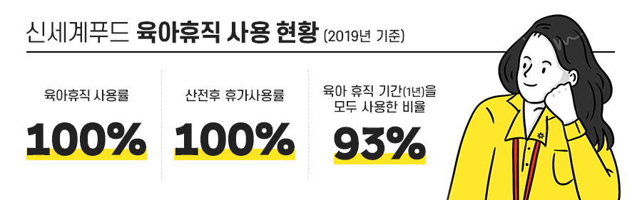 몸담고 있는 회사지만 가장 자랑하고 싶은 게 육아 관련 복지다. 육아 관련 복지가 정말 좋은 회사라고 자랑스럽게 얘기하고 싶다. 2019년에는 출산휴가를 사용한 76명의 모든 직원이 육아휴직을 사용했다. 본인이 원한다면 추가적인 희망 육아휴직도 사용할 수 있다. 자녀 문제나 육아, 휴직 후 복귀와 관련해 가족친화인증기업 국무총리상을 여러 차례 수상하기도 했다.
