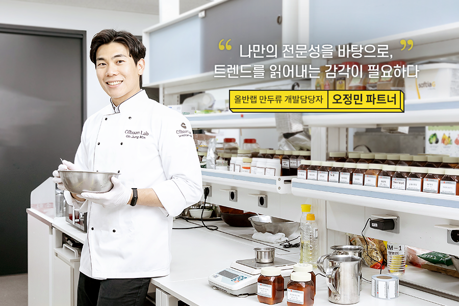 마지막은 ‘전문성’이다. 하나의 상품이 개발되기 위해서는 여러 단계를 거치는데 올반랩에는 각 단계에 전문가들이 모여있다. 나처럼 대학원을 다니며 석박사를 따거나 식품 관련 특허를 2개나 갖고 있는 사람도 있고 셰프 출신의 맛 전문가, 공장의 생산 전문가도 있다. 식품 개발이라는 목표 아래 각자의 능력을 공유하다 보니, 힘을 더할 나만의 전문성을 갖고 있으면 좋다.