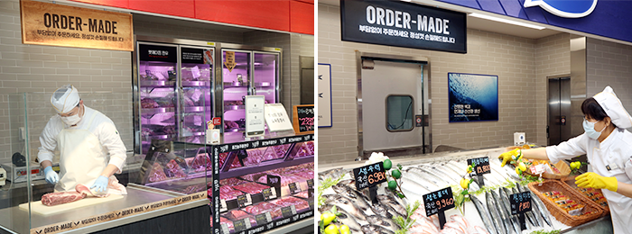 아울러, 이마트타운 월계점은 ‘오더메이드’ 서비스를 통해 고객 각각의 세밀한 취향을 맞출 수 있는 ‘고객 맞춤형’ 매장으로 거듭났다. 오더메이드 서비스란 축산, 수산코너에서 고객이 원하는 두께, 모양, 손질 형태를 구현해주는 서비스로, 고객들은 오더메이드 서비스를 통해 개개인들이 원하는 맞춤 서비스를 받을 수 있다.