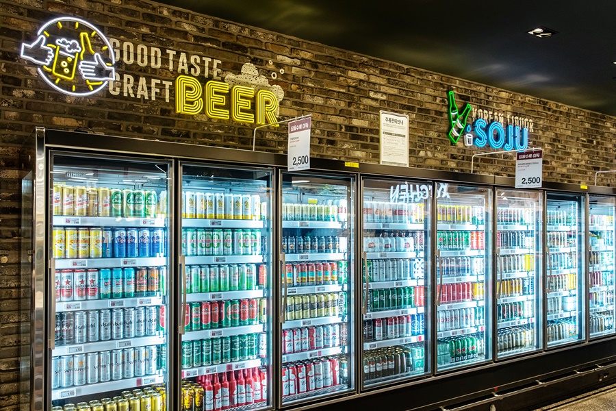 그 옆의 맥주 코너도 고심한 결과가 느껴졌다. 기존 대형마트에서 맥주 구매 시 아쉬운 점은 종류가 적고 상온 진열이라는 점이다. 그러나, 와인 앤 리큐르 샵의 벽을 차지하는 17대의 냉장고에는 350여 종의 맥주들이 가득 들어차 있었다. 냉장고 앞을 서성이던 남자 고객들은 “처음 보는 맥주다”, “여행 갔을 때 먹어봤던 건데 한국에선 처음 본다”와 같은 반응을 보이며 맥주를 고르고 있었다. 오프라인에서 구매할 수밖에 없는 ‘주류’를 핵심 경쟁력으로 내세운 이마트타운 월계점의 의도가 드러난다.