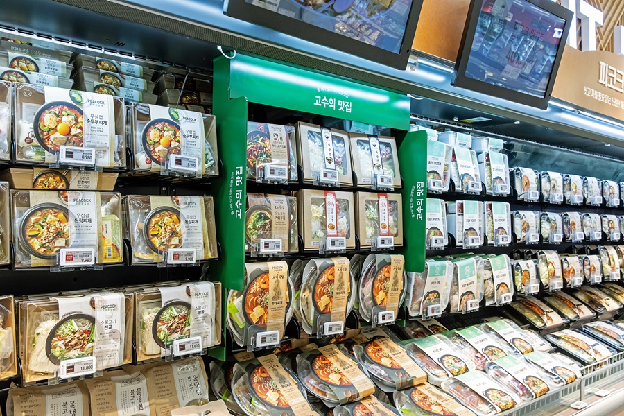 그대로 좌측 라인을 따라 들어가면, 젓갈류와 기본 반찬을 파는 오색밥상과 밀키트 존이 드러난다. 1~2인 가구에 맞춘 양으로 가정간편식을 선호하는 소비 트렌드를 반영한 구성이다. 이것이 이마트타운 월계점 내부의 첫인상이다. 매장 입구를 현재 트렌드에 맞게 바꾼 것이다.