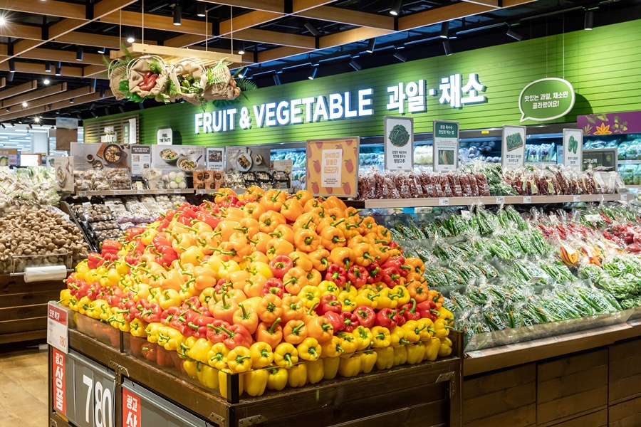 다시 매장 입구로 돌아와 우측으로 시선을 돌리니 널찍한 그로서리 존이 펼쳐졌다. 매장의 구역별 면적 변화는 이마트타운 월계점의 의도를 수치로 드러낸다. 그로서리를 기존 1,100평(3,636㎡)에서 1,200평(3,966㎡)으로 확대한 반면, 비식품 매장은 3,600평(11,900㎡)에서 500평(1,652㎡)으로 대폭 축소했다. 온·오프라인 모두 품질이 균일한 비식품의 비중을 줄이고, 오프라인만의 강점으로 작용할 수 있는 그로서리 비중을 늘렸다. 신선식품에 대한 이마트의 의지가 확고히 드러나는 지점이었다.