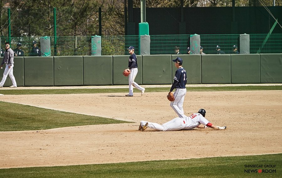 이날 선발은 이채호 선수가 나섰다. 올 리그 4경기에서 무자책점을 이어간 이채호 선수의 언더핸드는 오늘도 안정적이었다. 3.2이닝 동안 2개의 피안타만을 허용하고 4개의 삼진을 잡아내며 두산의 타격을 걸어 잠갔다. 그 사이에 SSG 랜더스 타자들은 맹타를 휘두르며 무난히 3득점을 취했다. 첫 득점은 2회말 SSG 랜더스 김경호에게서 나왔다. 김경호는 두산 베어스 선발투수 남호를 상대로 3구째 볼을 받아쳐 좌익수 왼쪽으로 공을 날렸다. 3루 주자에 있던 고명준이 홈베이스를 밟으며 SSG 랜더스는 1-0으로 먼저 앞서나갔다. 공격은 여기서 끝나지 않았다. 연이어 타석에 들어선 유서준이 적시타를 만들었다. SSG 랜더스는 2회부터 강하게 두산 베어스를 몰아붙였다. 이어진 3회 말에서도 이현석이 큼지막한 타구로 희생플라이를 만들며 3루 주자 남태혁을 홈으로 불러들였다. 호쾌한 시작이었다.
