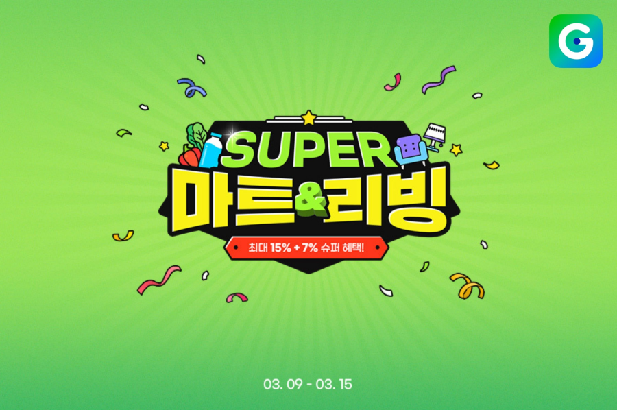 자세한 내용은 G마켓과 옥션 메인 페이지 상단에서 ‘SUPER 마트&리빙’ 프로모션 배너를 통해 확인할 수 있다.