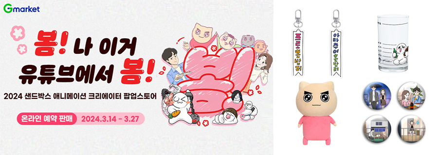 해당 MD는 총 구독자 1000만명에 달하는 샌드박스네트워크의 인기 애니메이션 크리에이터 ‘총몇명’, ‘빨간내복야코’, ‘소맥거핀’이 직접 기획에 참여해 제작한 것으로, 키링, 스마트톡, 핀버튼 세트 등 한정판 굿즈를 만날 수 있는 기회다.