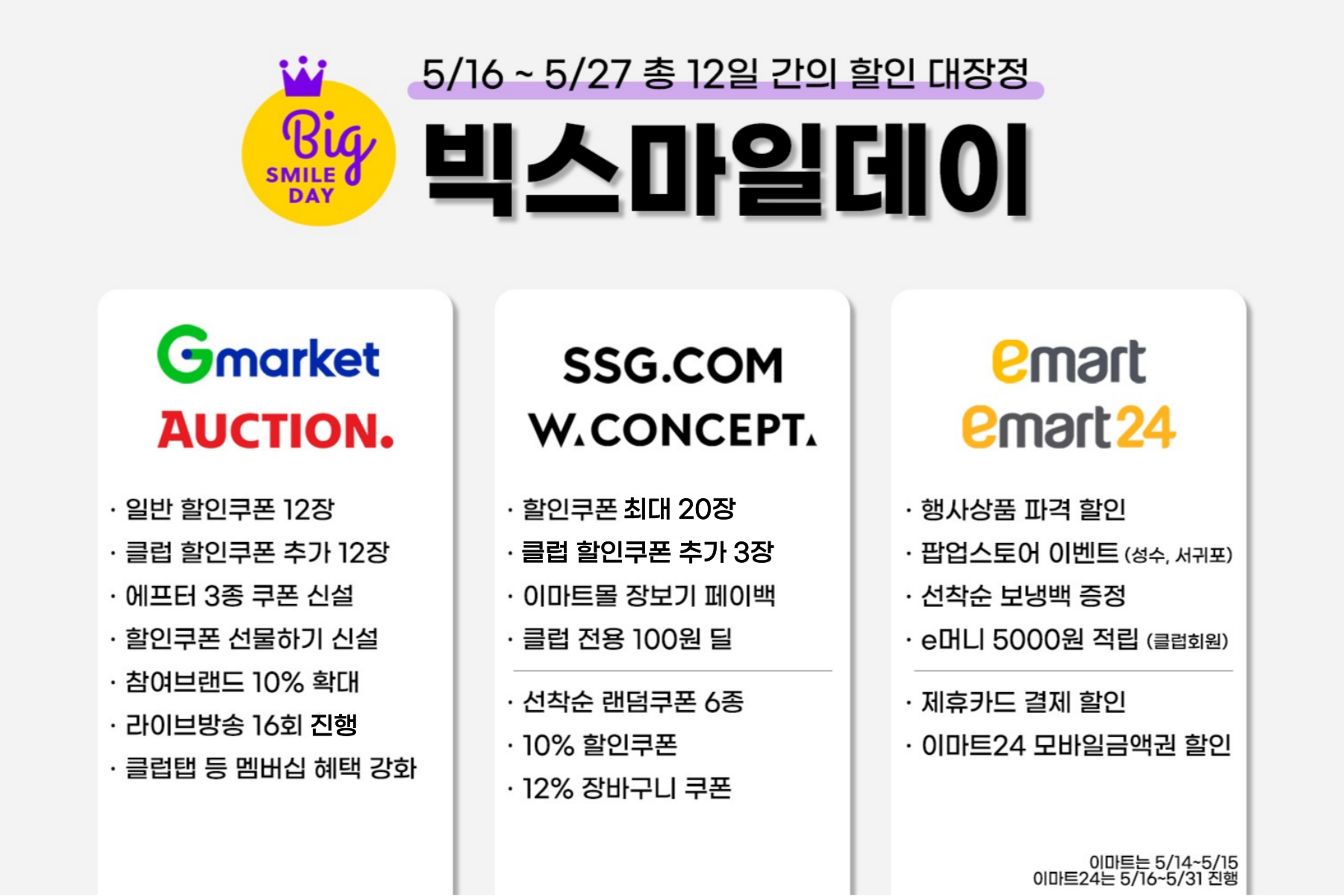 MEDIA 글자 크기 보통 크게 아주 크게 공유하기 페이스북 X 카카오톡 링크 복사 링크 복사됨 도구 보기 이미지 다운로드 지마켓글로벌, G마켓·옥션, 할인축제 ‘빅스마일데이’ 오픈… 쇼핑 ‘신세계’ 열린다 2022.05.16 이마트