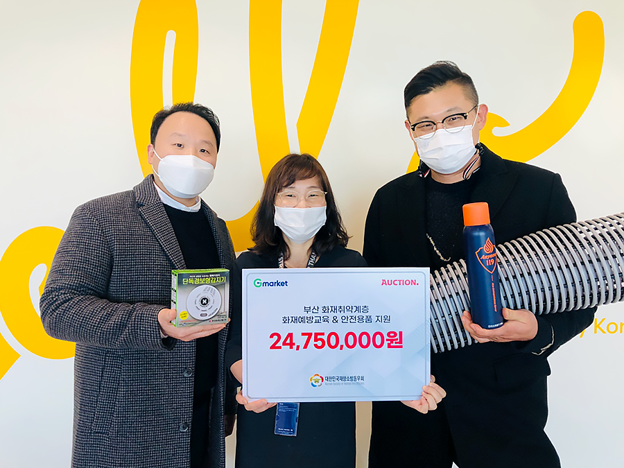 G마켓-옥션은 2019년부터 재래시장, 독거어르신 가구 등을 은퇴소방관이 방문해 화재예방교육과 함께 소방안전용품을 전달하는 활동을 펼치고 있다. 이번 지원에서는 대한민국재향소방동우회 소속 퇴직소방관 3명이 부산 화재취약 독거어르신 100여 가구를 직접 방문해 화재예방, 대피교육 등을 실시하고, 소방안전용품 설치 및 G마켓-옥션의 기부 물품을 전달한다.