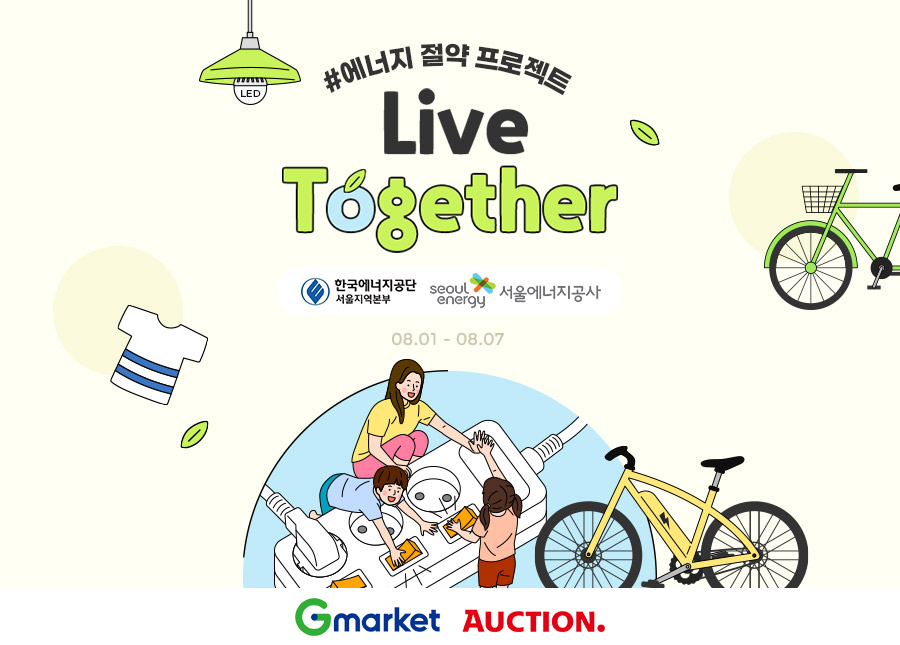 국내 대표 온라인마켓플레이스 G마켓과 옥션이 서울에너지공사, 한국에너지공단 서울지역본부와 함께 에너지절약 캠페인 ‘리브 투게더’(Live Together)를 진행한다. 오는 7일까지 전기자전거, 냉감의류, 서큘레이터 등 탄소 절감을 위한 각종 상품을 최대 70% 할인 특가에 선보인다.