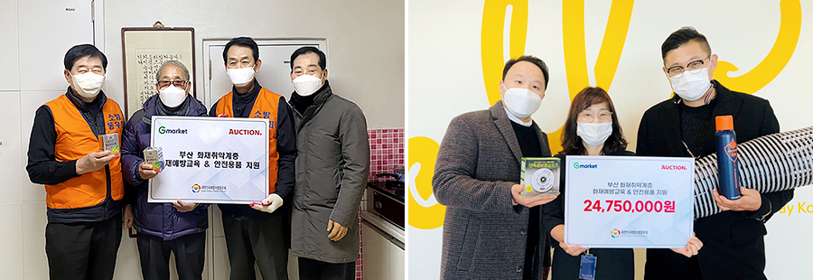 이번 안전물품 전달은 G마켓과 옥션이 2019년부터 재래시장, 독거어르신 가구 등에 화재예방교육 및 소방안전용품을 전달해온 사업 일환이다.