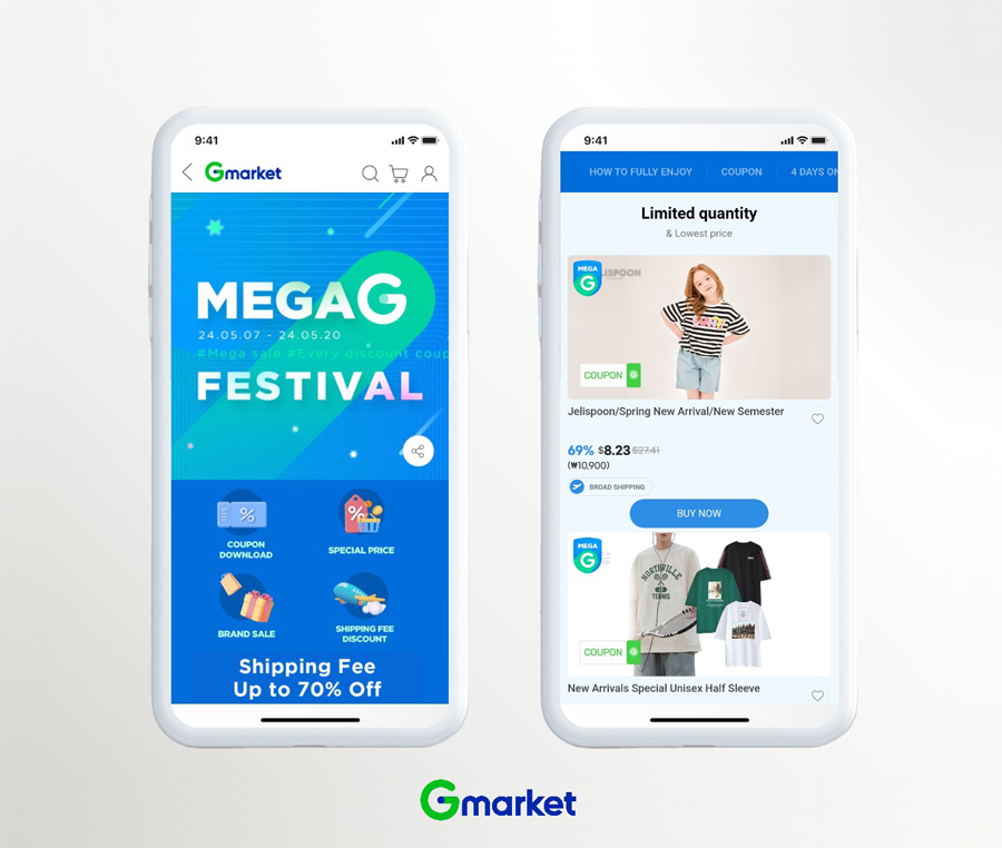 메가G 프로모션은 인기 K-상품의 해외 판매 촉진을 위해 빅스마일데이 수준의 할인혜택을 제공하는 연중 최대 역직구 프로모션이다. G마켓 ‘글로벌샵’을 통해 영문, 중문 서비스를 제공한다. 최대 15만원까지 할인되는 15% 쿠폰을 지급하고, 인기 K-상품을 최대 70% 할인가에 판매한다.