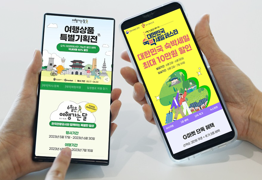 국내 대표 온라인 마켓플레이스 G마켓이 내달 30일까지 ‘2023 대한민국 숙박세일 페스타’, ‘여행상품 특별 기획전’ 등 문화체육관광부와 한국관광공사가 주최하는 여행 프로모션에 연이어 참여한다. G마켓 단독 할인 혜택도 마련했다.