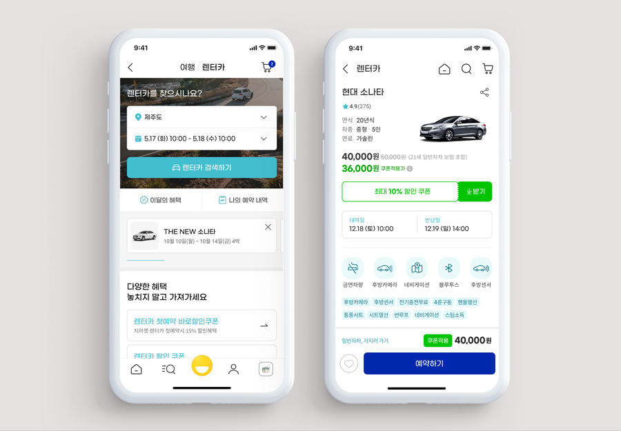 예약 페이지는 최대한 간결하게 디자인해 눈의 피로도를 낮췄다. 대신 보험, 차종, 연식 등 렌트 시 필수 확인 정보는 페이지 상단에 배치해 사용 편의성을 높였다. 무료취소 가능일, 주유 시 주의사항, 운전 특징 등 차량에 관한 기타 상세 정보 역시 ‘체크포인트’로 묶어 안내한다. 그 외 후방카메라, 후방센서, 네비게이션, 블루투스 등의 차량 별 정보도 모두 확인 가능하다.
