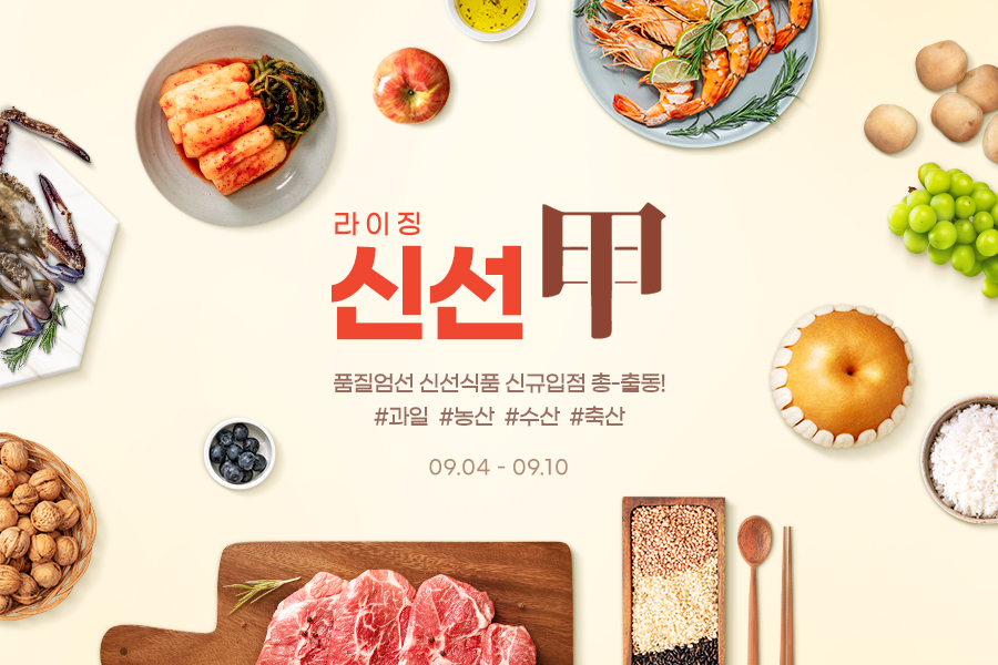 신선甲(갑)은 신선식품 카테고리 강화를 위해 지난 2월 런칭한 월간 정기 프로모션이다. 이번 9월 행사는 신규 셀러의 판매 활동 지원을 위해 올해 신규 입점한 350여 셀러들의 우수 상품으로 구성했다.