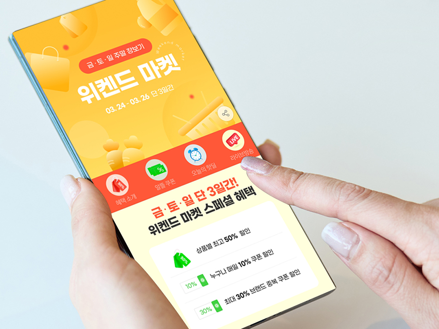 더 자세한 내용은 G마켓과 옥션 메인 페이지 상단의 ‘위켄드 마켓’ 프로모션 배너를 클릭하면 확인할 수 있다.