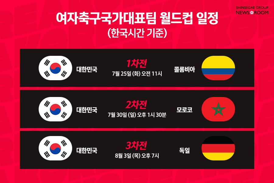 여자축구국가대표팀은 이번 월드컵에서 16강을 넘어 8강을 노린다. 여자축구국가대표팀의 조별리그 첫 경기는 25일 콜롬비아전이다.