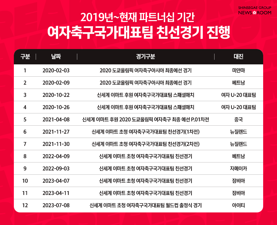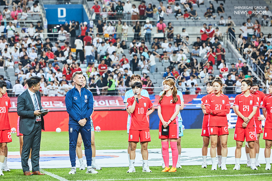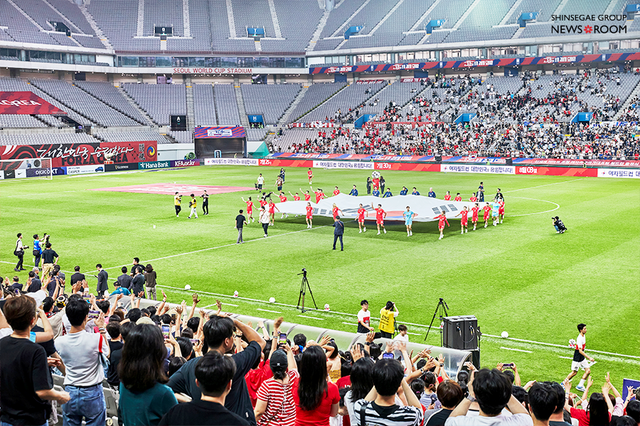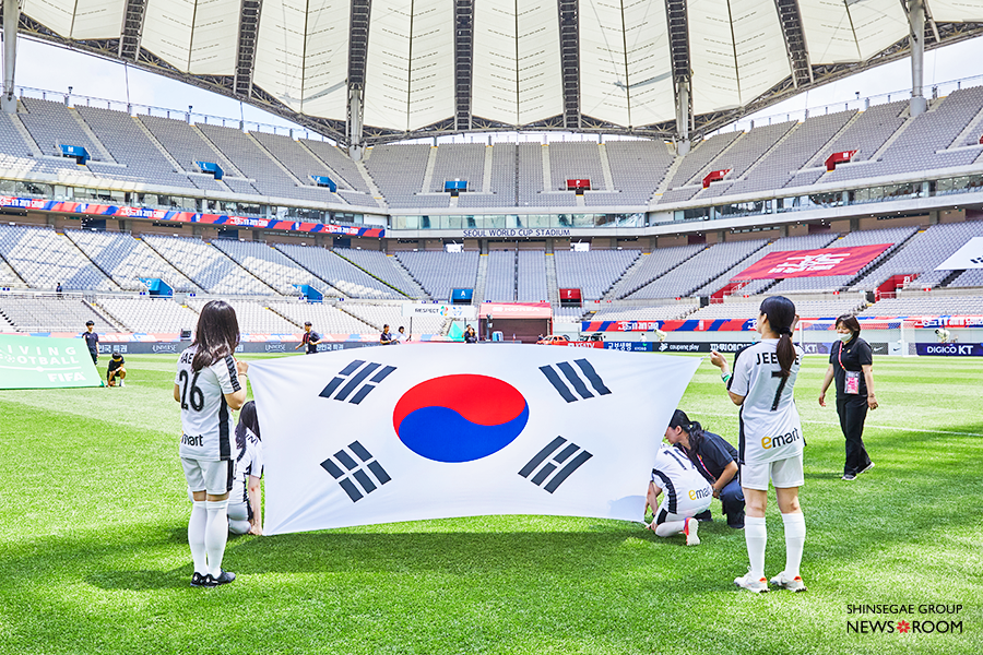 신세계그룹은 메인파트너사로 유스프로그램, 기수단에 참여하며 여자축구국가대표팀에 응원의 힘을 보탰다