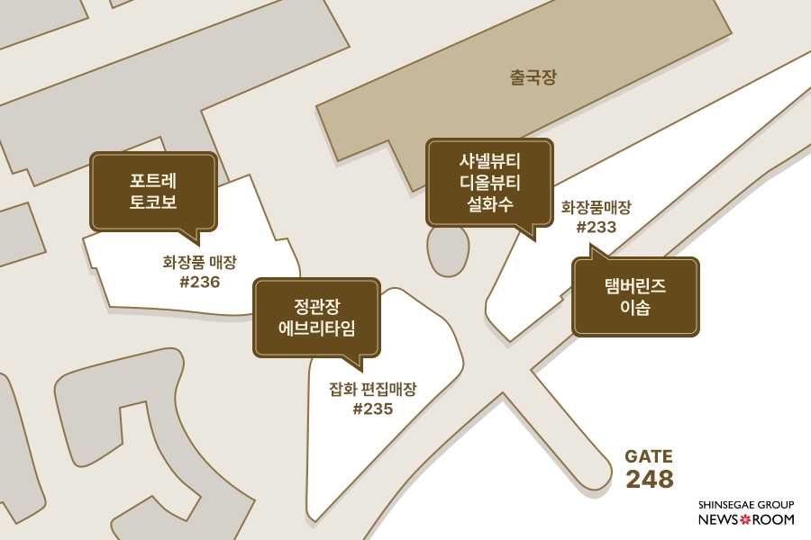 MD기획팀 이희은 파트너의 설명을 들으며 신세계존 탐방을 본격적으로 시작했다. 출국 심사를 마치고 게이트 248번 방향으로 발걸음을 옮기면, 화이트톤의 세련된 외관과 부드러운 곡선형 디자인으로 이뤄진 신세계존이 한눈에 들어온다.