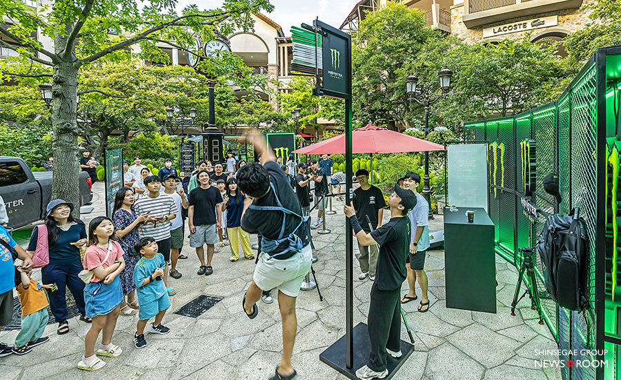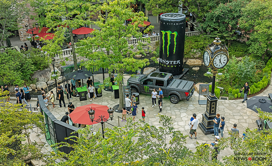 센트럴 가든에 들어서자 아기자기한 팝업들이 눈에 띈다. 중심부에 우뚝 솟은 초대형 음료수 캔 조형물과, 초록색 숲 사이로 빛나는 녹색 네온사인이 시선을 빼앗는다. 미국의 대표적인 에너지 드링크 브랜드 ‘몬스터 에너지’의 팝업스토어다.