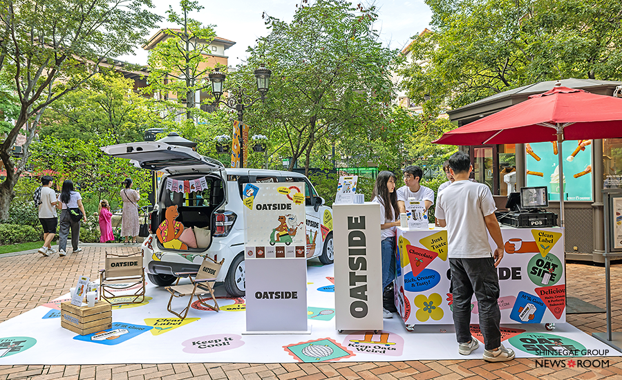 건강식을 찾는 고객을 위한 팝업스토어도 마련됐다. 싱가포르의 식물성 음료 브랜드 ‘오트사이드’다. 이곳에서도 게임에 성공 시 제품을 증정하는 ‘오트사이드 슬라이드’ 게임이 진행되고 있었다. 오트사이드를 콘셉트로 한 차량과 대용량 팩 조형물 역시 색다른 포토존이 되어준다.