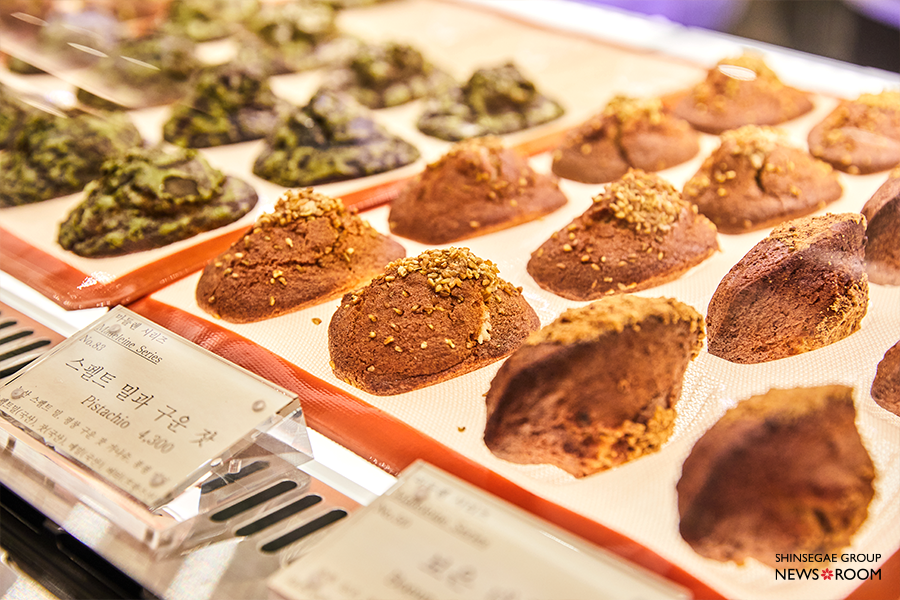 “우선 스위트 파크에 국내 최초 오픈한 피에르 마르콜리니의 초콜릿을 추천합니다. 월드 페이스트리 챔피언이 만드는 초콜릿이라면 사랑하는 사람의 마음도 녹일 거예요. ‘그리너리’, ‘사막’ 등 흥미로운 이름을 가진 르솔레이의 마들렌도 추천합니다. 신세계강남점에서는 ‘스펠트밀과 구운 잣’, ‘보은 대추’를 단독으로 선보여요.”