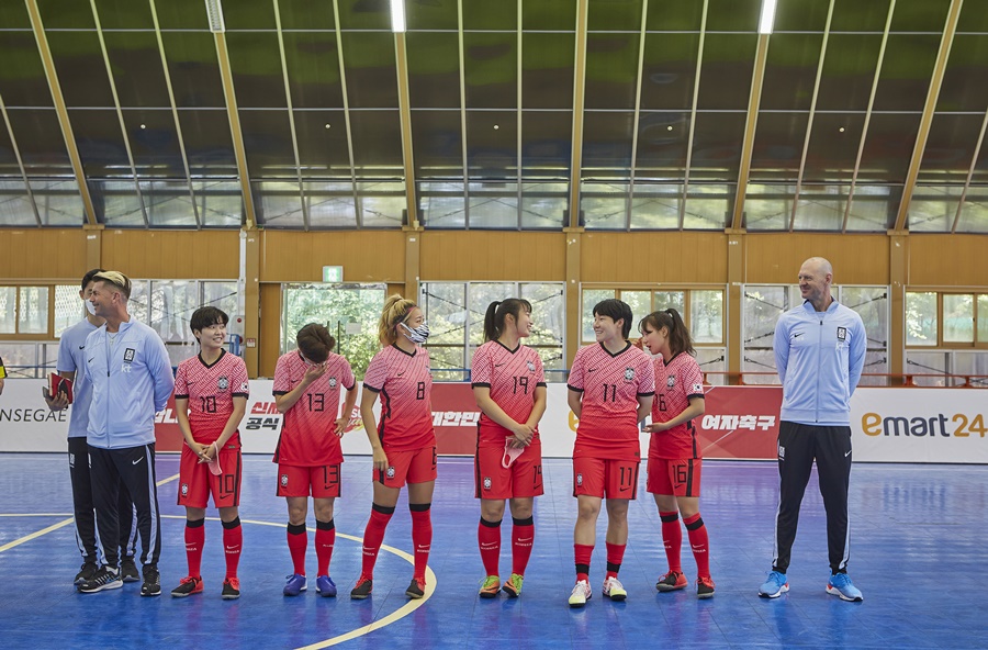 6월 20일, 대한민국 여자축구 국가대표 선수 6명이 풋살장에 모습을 드러냈다. 지소연을 필두로 한 조소현, 이금민 등 해외파 선수들, 그리고 콜린벨 감독을 포함한 최정예 구성이다. 이들이 모인 이유는 하나다. 신세계그룹사 내, 막강한 축구 실력자들로 뭉친 ‘쓱FC’의 도전장에 응하기 위해서다.