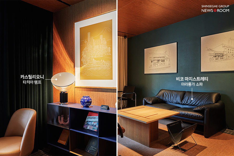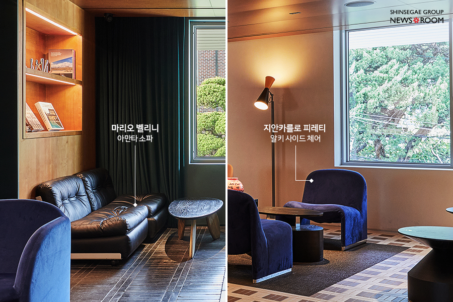 5. 라운지: 이탈리아와 한국 디자이너의 가구가 조화롭게 배치된 공간이다. 이곳에서 동서양의 조화를 느껴보자.