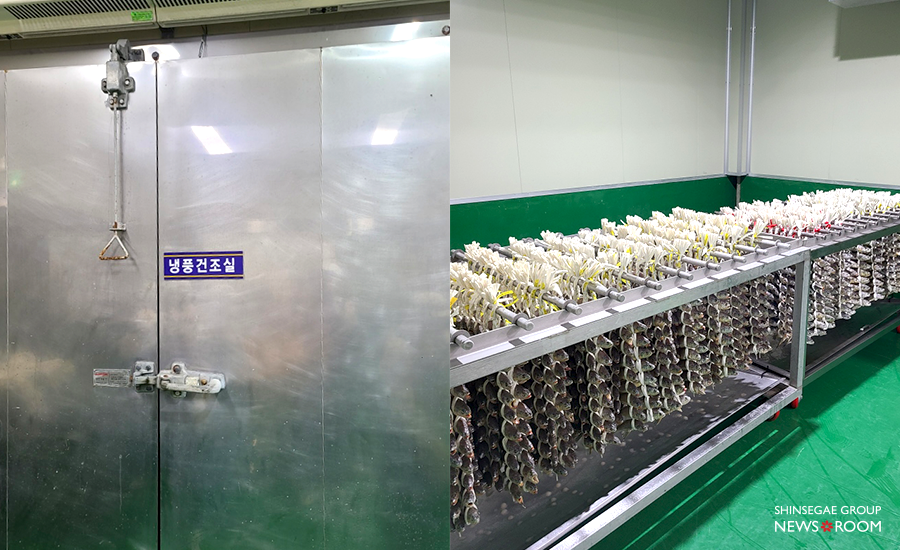 물기가 제거된 조기는 4~6℃의 저온 환경에서 한 시간 정도 냉풍 건조를 진행한다. 50% 이상 건조된 ‘마른 굴비’를 만드는 경우에는 실외에서 해풍으로 건조하기도 한다. 염장과 건조까지 굴비가 되기 위한 필수 조건을 모두 충족한 조기는 냉동창고로 옮겨져 -35℃ 이하로 급속 동결한다.