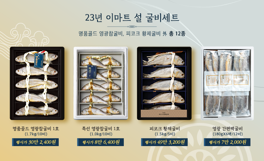 프리미엄 선물세트 수요가 꾸준히 증가하고 있는 만큼, 최고급 굴비세트 물량도 최대 50% 추가로 확보했다. 대표적으로 ‘피코크 황제 굴비’ 세트는 1마리당 평균 300g 내외 무게로 전체 참조기 물량 중 최고급으로 꼽힌다. 그 외 대표 세트로는 ‘명품골드 영광참굴비 1호 (1.7kg/10미)’, ‘특선 영광 참굴비 1호(1.0kg/10미)’ 등이 있으며 총 12종의 굴비세트를 준비했다.