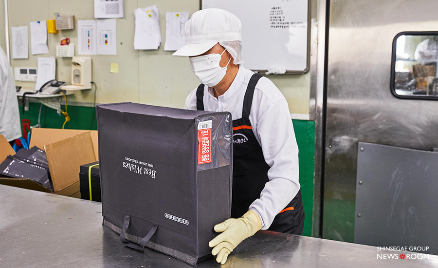 마지막으로 꼼꼼한 계량 및 금속 검출을 포함한 검품을 진행한 뒤, 상품성에 문제가 없는 조기는 포장지로 새 옷을 입는다. 고객의 손에 전해지기 위한 최종 관문인 만큼, 쇼핑백에 담는 마지막 순간까지 심혈을 기울인다.